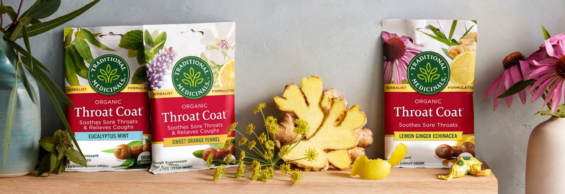 - Throat Coat® Lozenges Lemon Ginger Echinacea- Soothes sore throats & relieves coughs with sweet and warming support