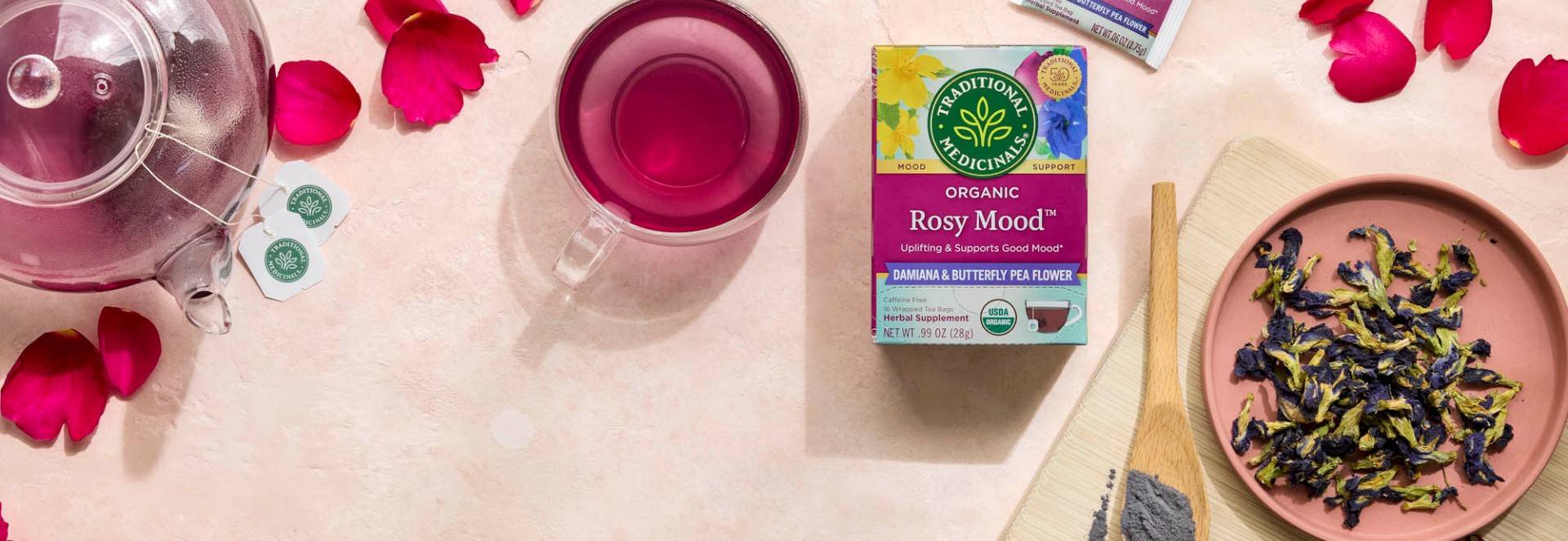 NEW! Elevate your senses with this blend crafted by our herbalists to support joy and inner harmony. With the uplifting herbal power of damiana and rose, and the unique addition of butterfly pea flower to inspire a sense of wonder, this tea supports a happy mood and an open heart.* Enjoy this mildly tart & sweet floral tea whenever you need a little extra positivity to brighten your day.